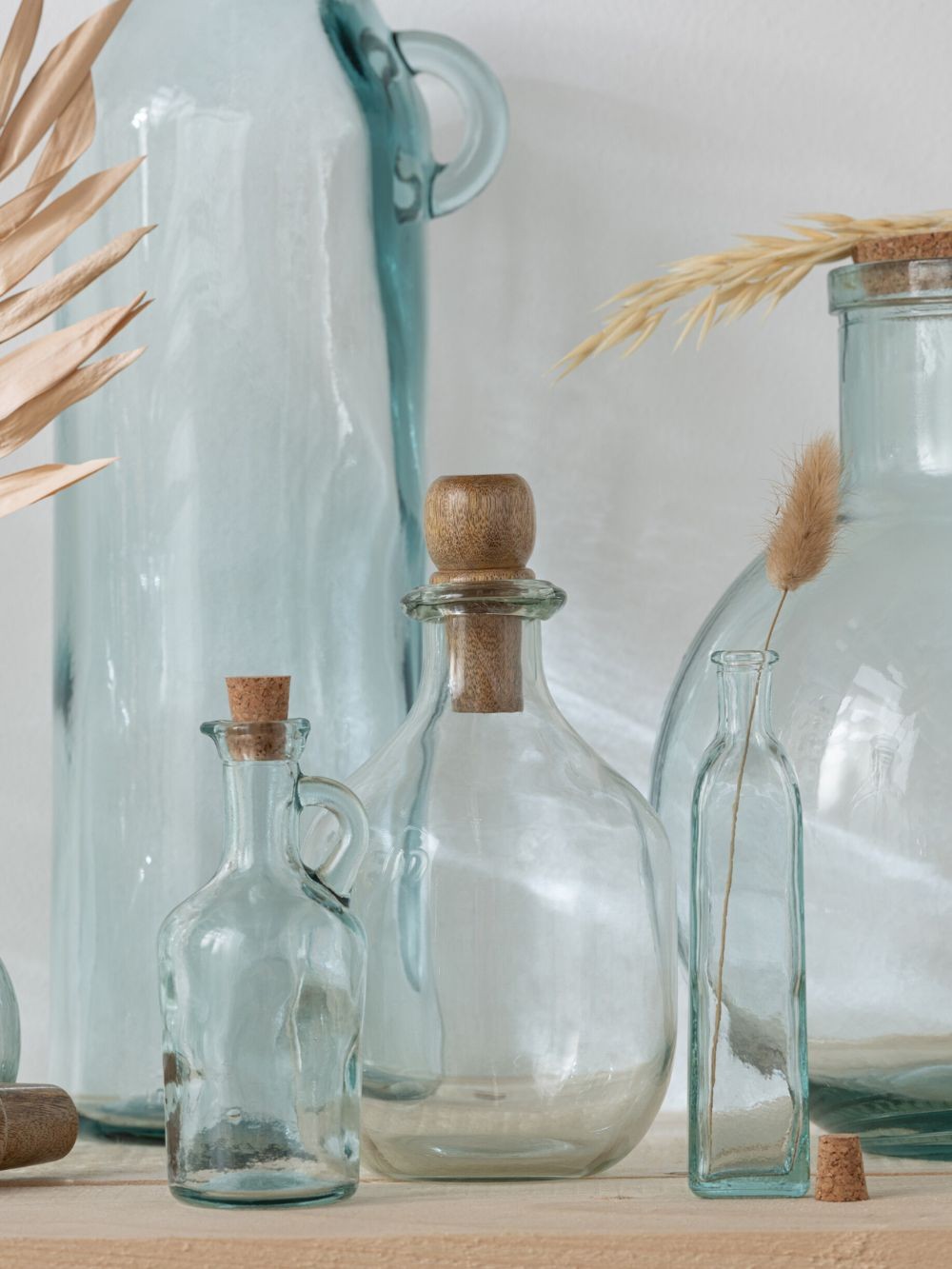 Carafe ronde en verre recyclé avec son bouchon, 250 ml