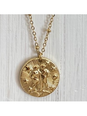 Collier avec pendentif, signe astrologique ou du zodiaque du gémeau.