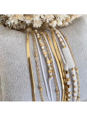 Bracelet léger en acier inoxydable doré composé de 4 rangs. Résistant à l’eau. Amusez-vous à les associer avec d'autres bracelets et suivre la tendance du moment !