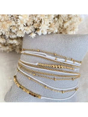 Bracelet léger en acier inoxydable doré composé de 4 rangs. Résistant à l’eau. Amusez-vous à les associer avec d'autres bracelets et suivre la tendance du moment !