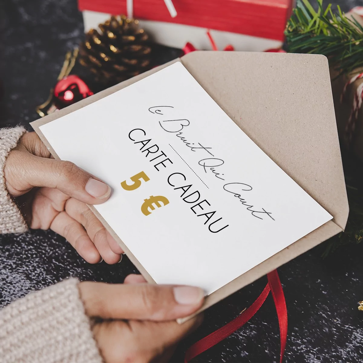 Envoyez une carte cadeau Le bruit qui court personnalisée par e-mail à la personne de votre choix. Le montant est ensuite disponible sous forme de bon d'achat sur l'ensemble de notre e-shop ainsi qu'en boutique.