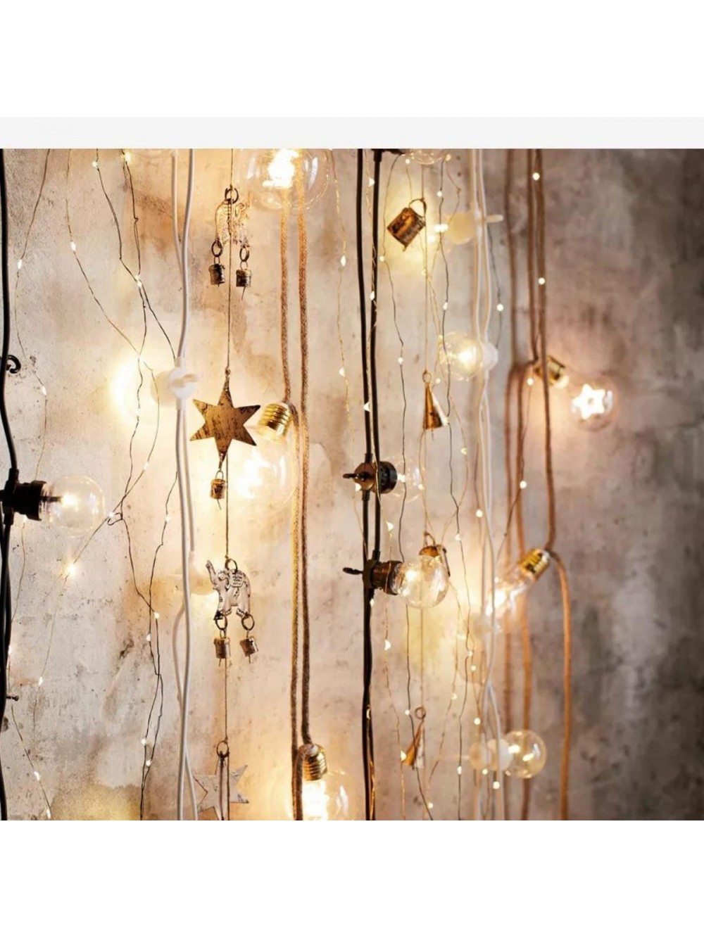 Magnifique guirlande avec fil en toile de jute, avec 8 ampoules, installer-la dans un salon, une chambre, un dressing, elle se fondra dans votre décors et apportera un coté chaleureux, cocooning à votre pièce...