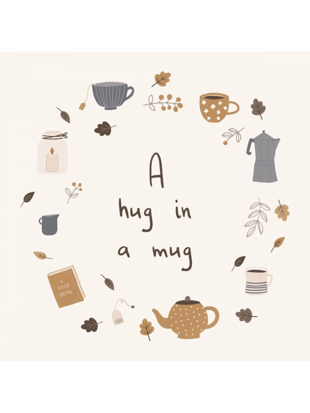 Joli lot de 20 serviettes en papier, carré, avec de très beaux motifs floral et une inscription "A hug in a mug"
