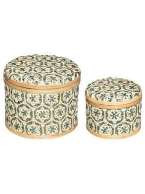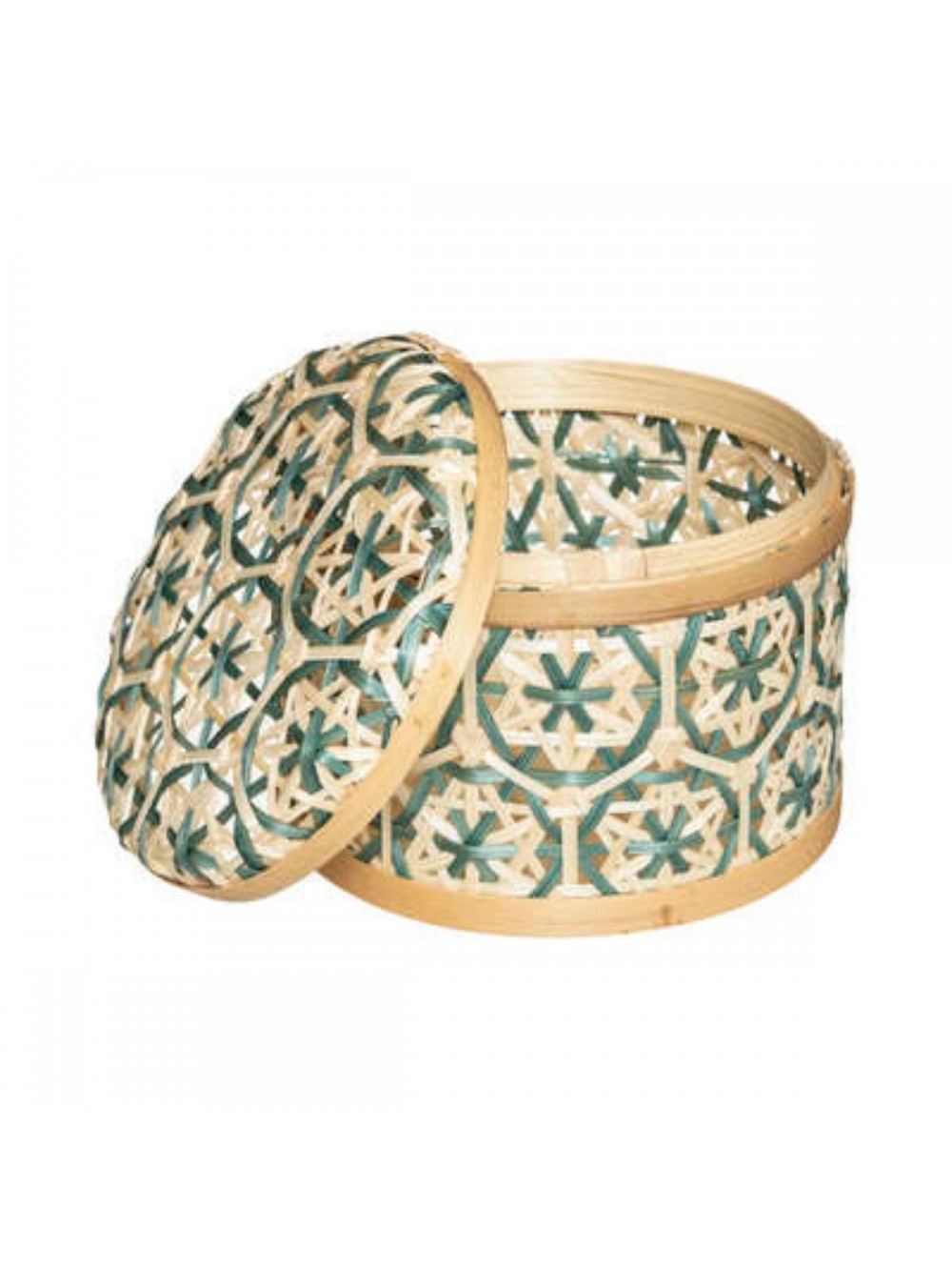 Très belle boîte ronde en bambou de couleur bleu/vert et naturelle...