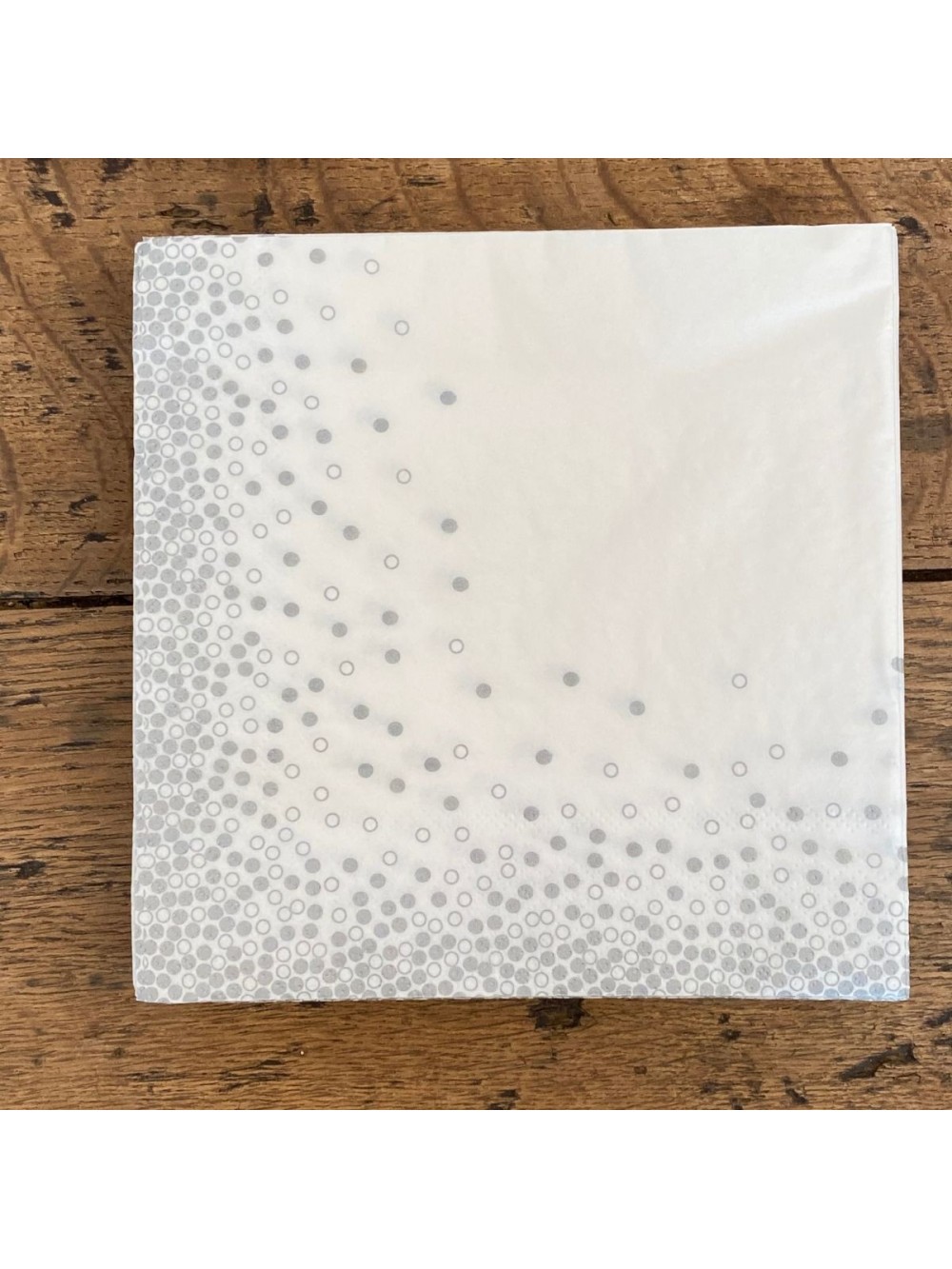 Joli lot de 20 serviettes en papier, de très beaux motifs dans les tons de gris sur fond blanc.