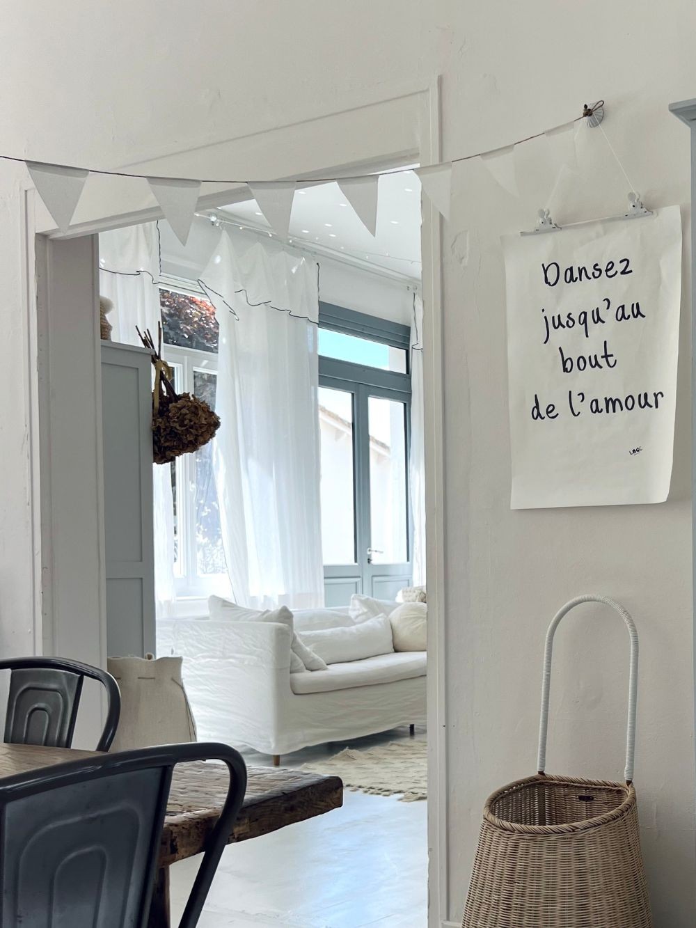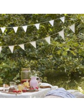 Guirlande de 15 drapeaux blanc en coton et jute, longueur 4 mètres