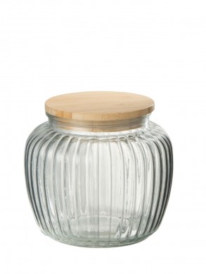 Pot en verre strié et bambou transparent et naturel