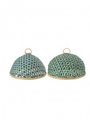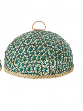 Cloche alimentaire à motif mosaïque en bambou bleu foncé et vert d'eau