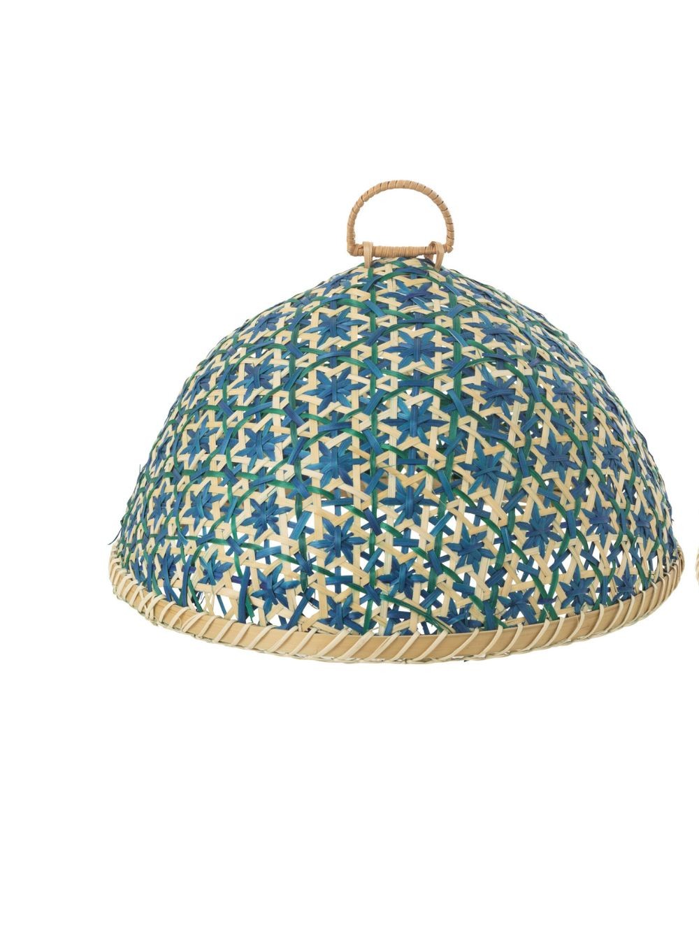 Cloche alimentaire à motif mosaïque en bambou bleu foncé et vert d'eau