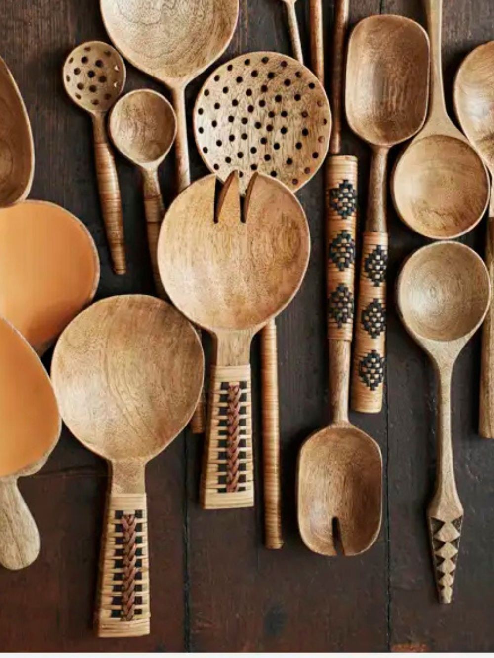 Couvert à salade en manguier et rotin