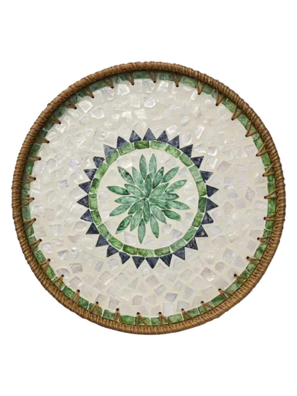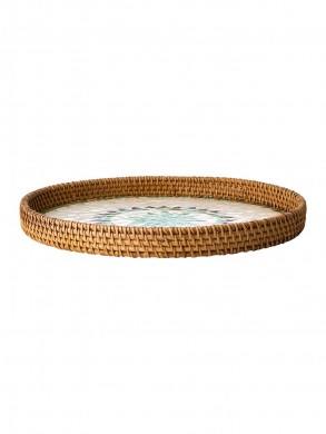 Plateau en rotin et coquillage vert et naturel