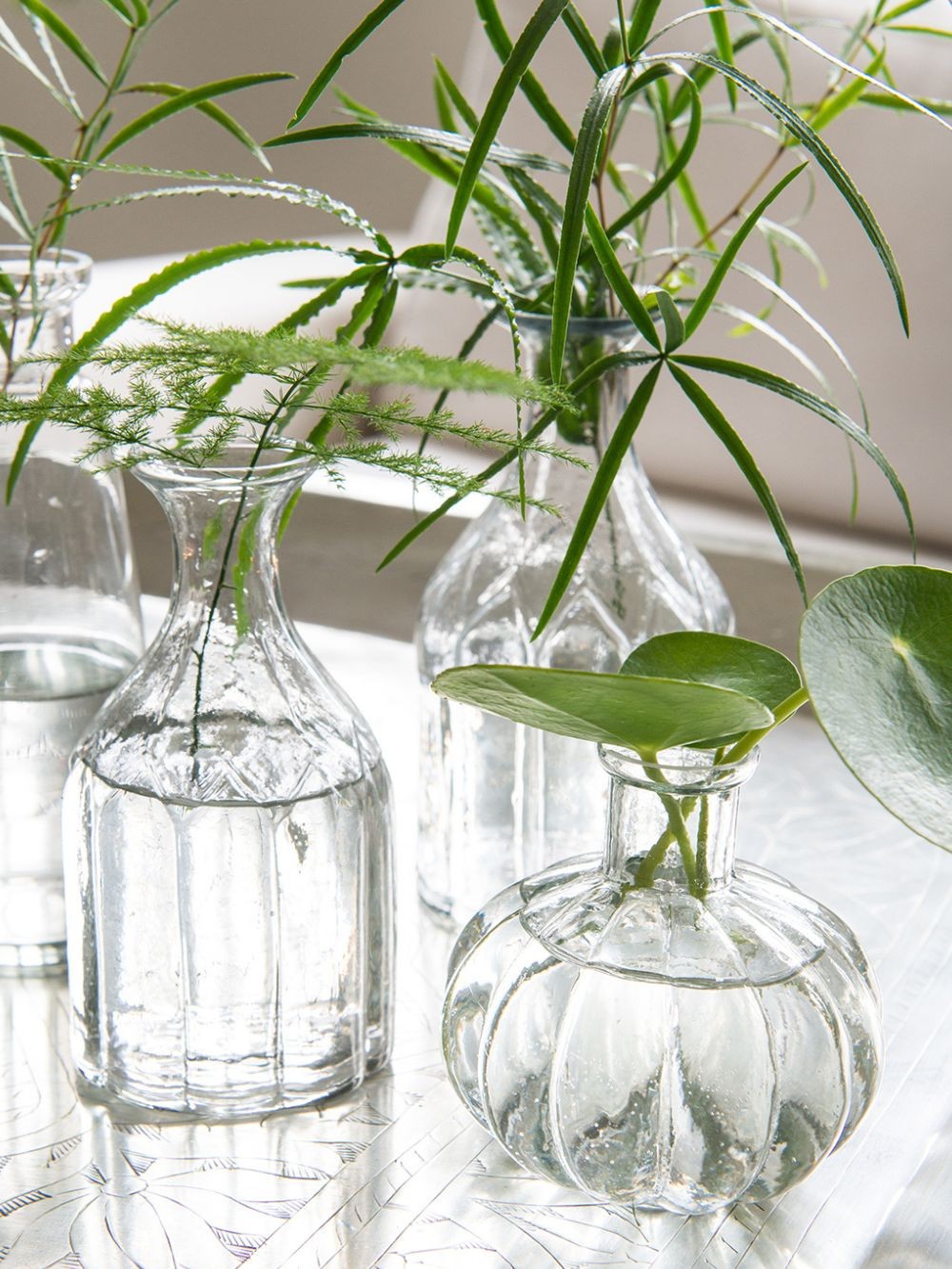 Vase en verre transparent canelé