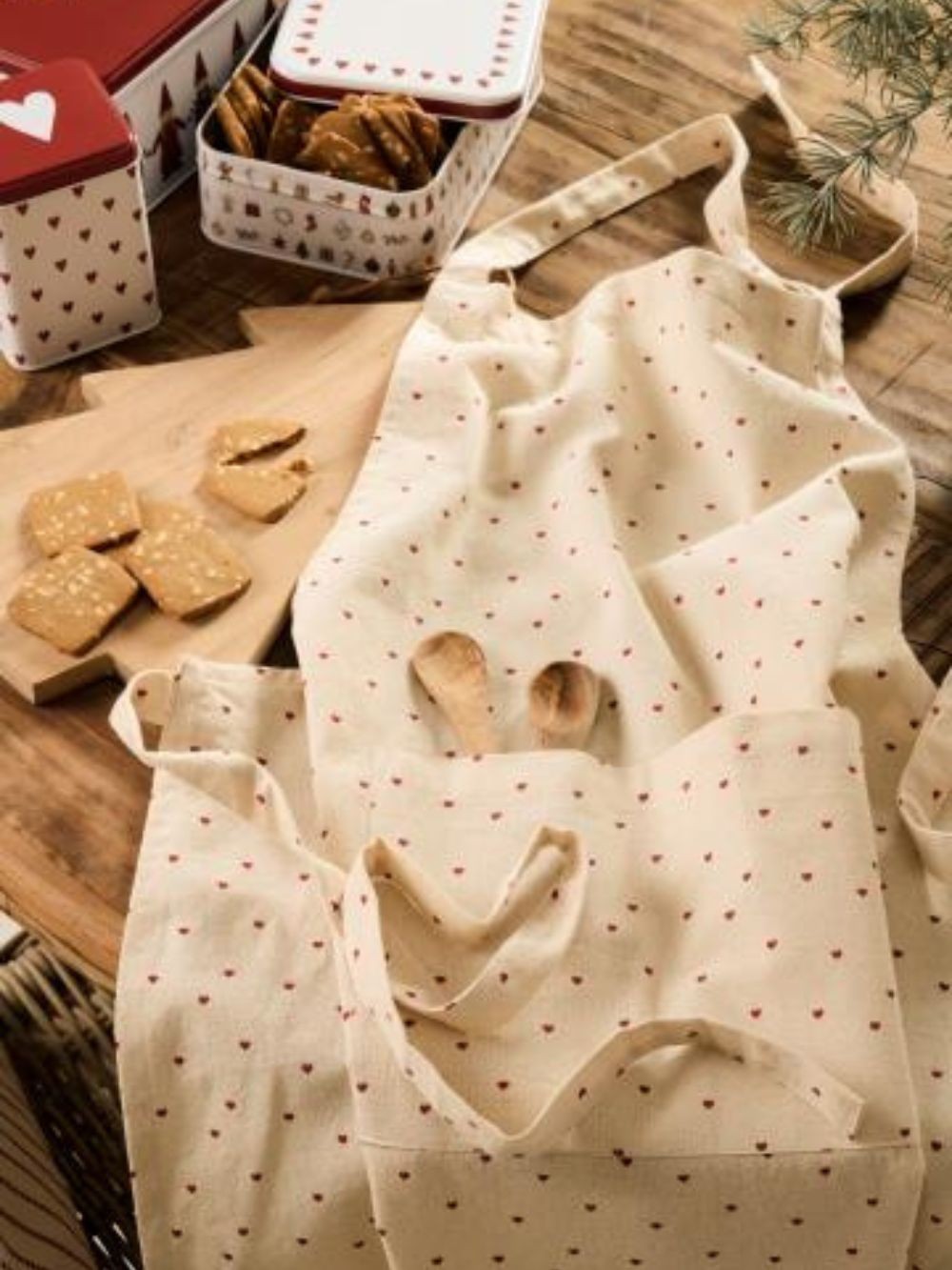 Tablier en coton de couleur naturel avec des coeurs rouge