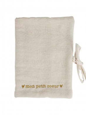 Protège carnet de santé écru en coton avec un message MON PETIT COEUR