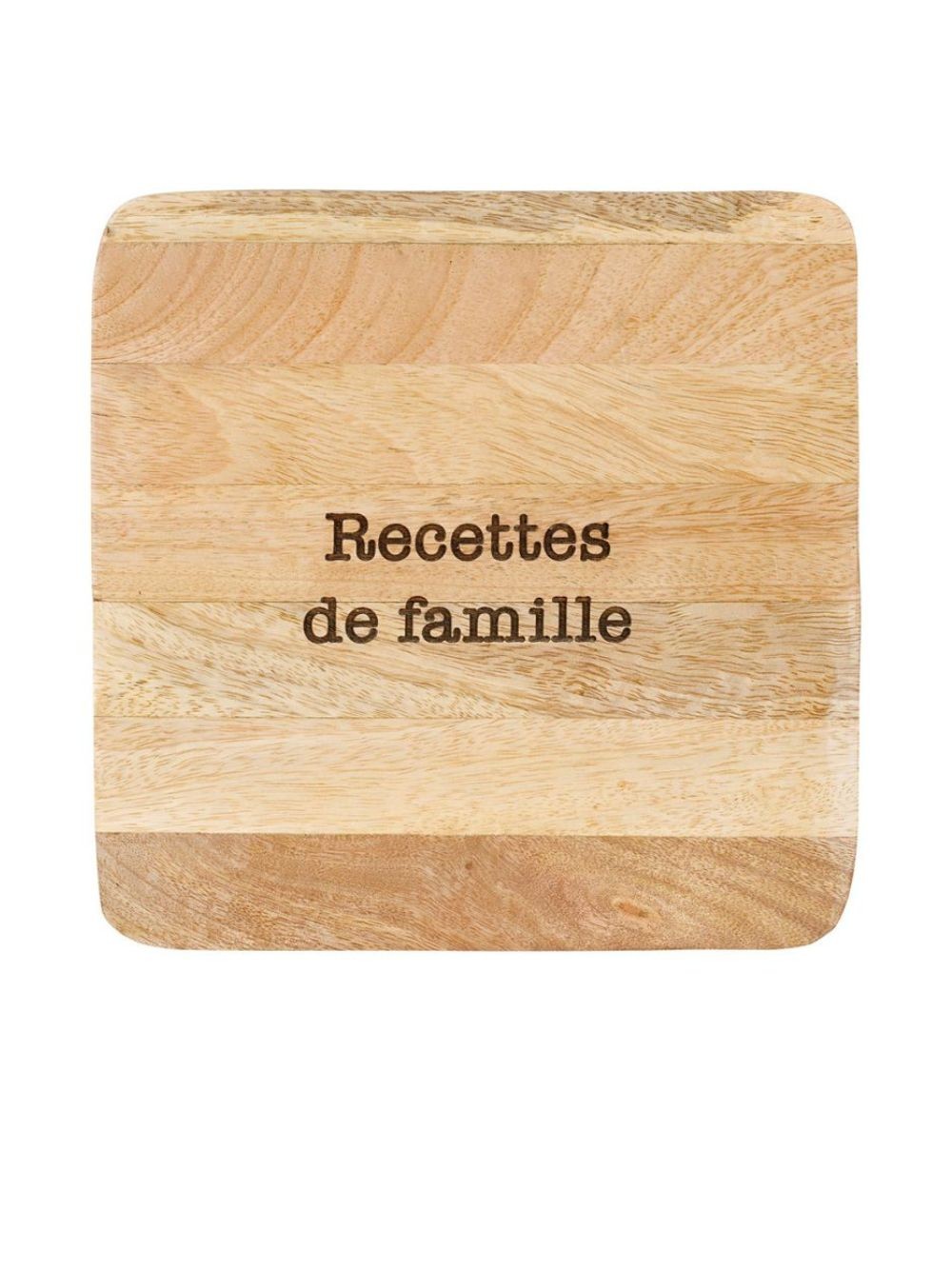 Dessous de Plat en manguier avec un message RECETTES DE FAMILLE