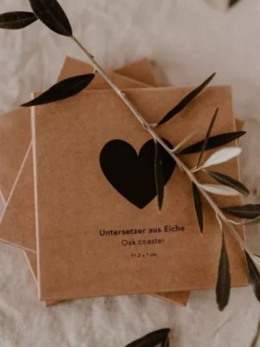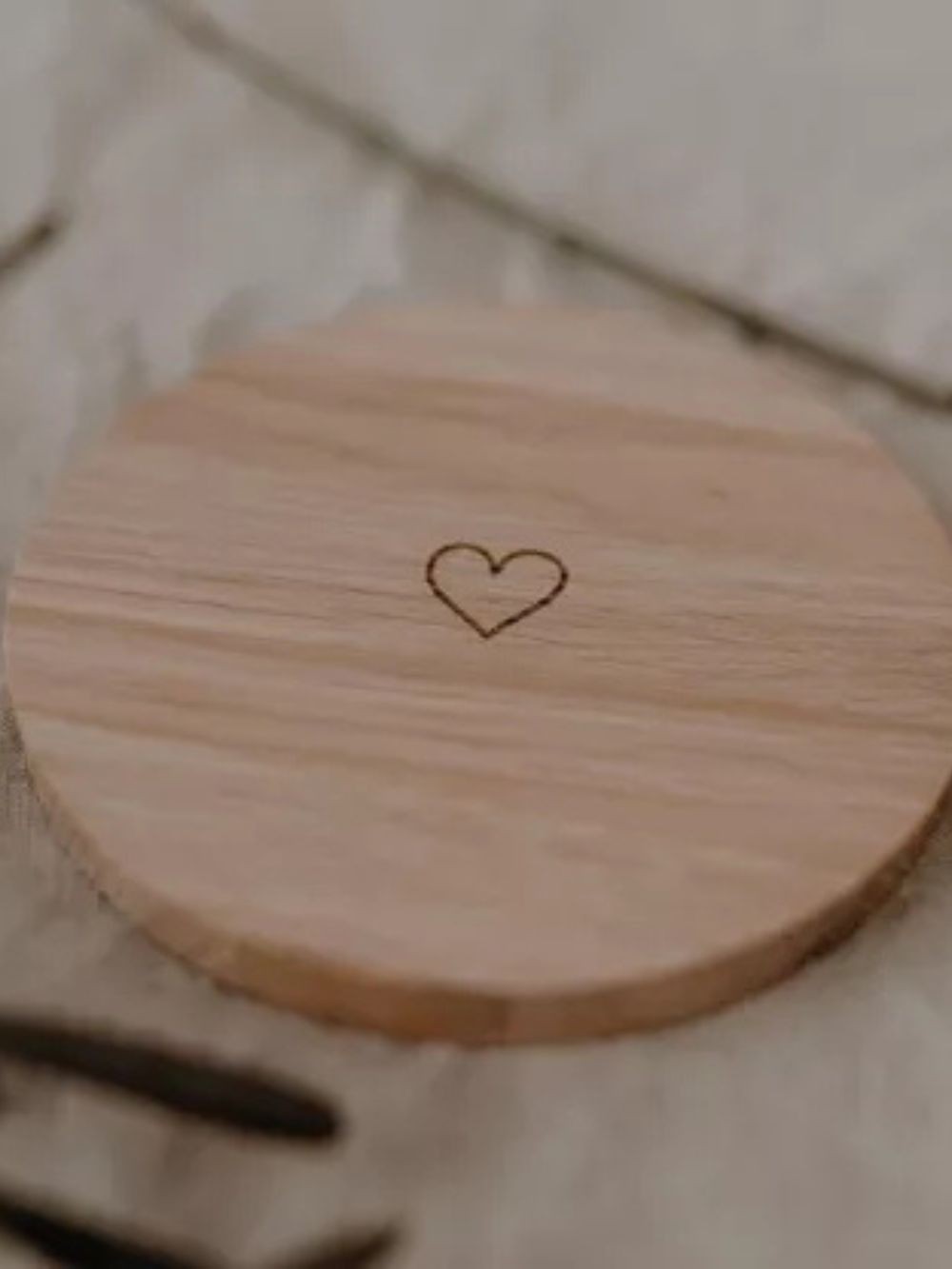 Dessous de verre rond en bois de chêne avec un coeur