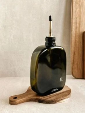 Sublimez votre cuisine avec cet bouteille d'huile vert antique, une pièce unique au design organique et asymétrique. Cette création exclusive allie élégance et fonctionnalité pour sublimer votre huile d'olive favorite.