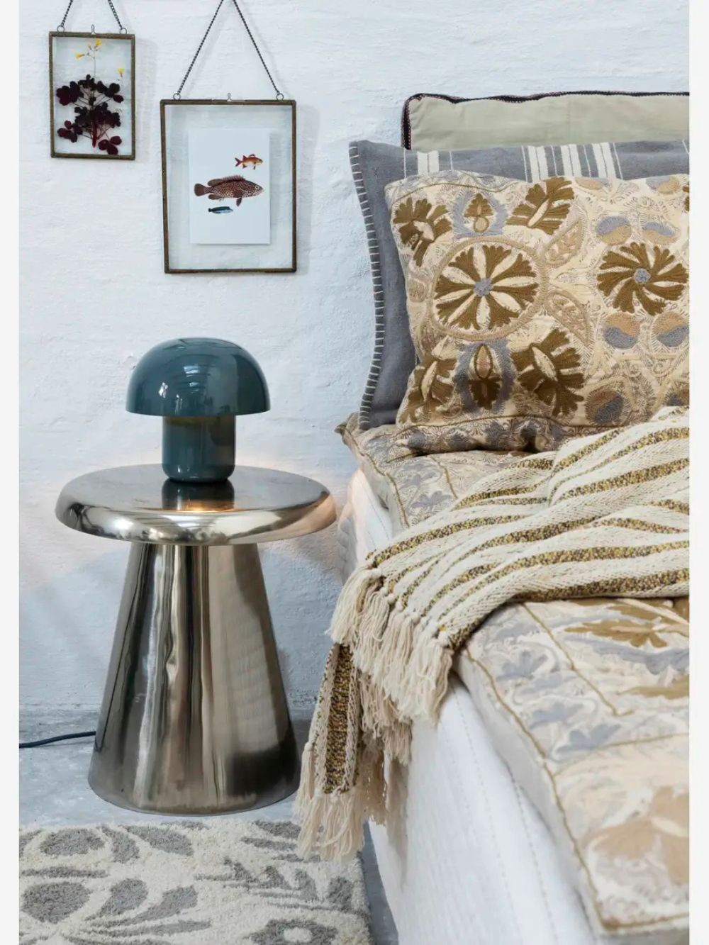 Table d'appoint de couleur argenté en métal émail