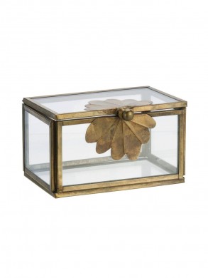 Boîte à bijoux en verre ornée d'une feuille de laiton,