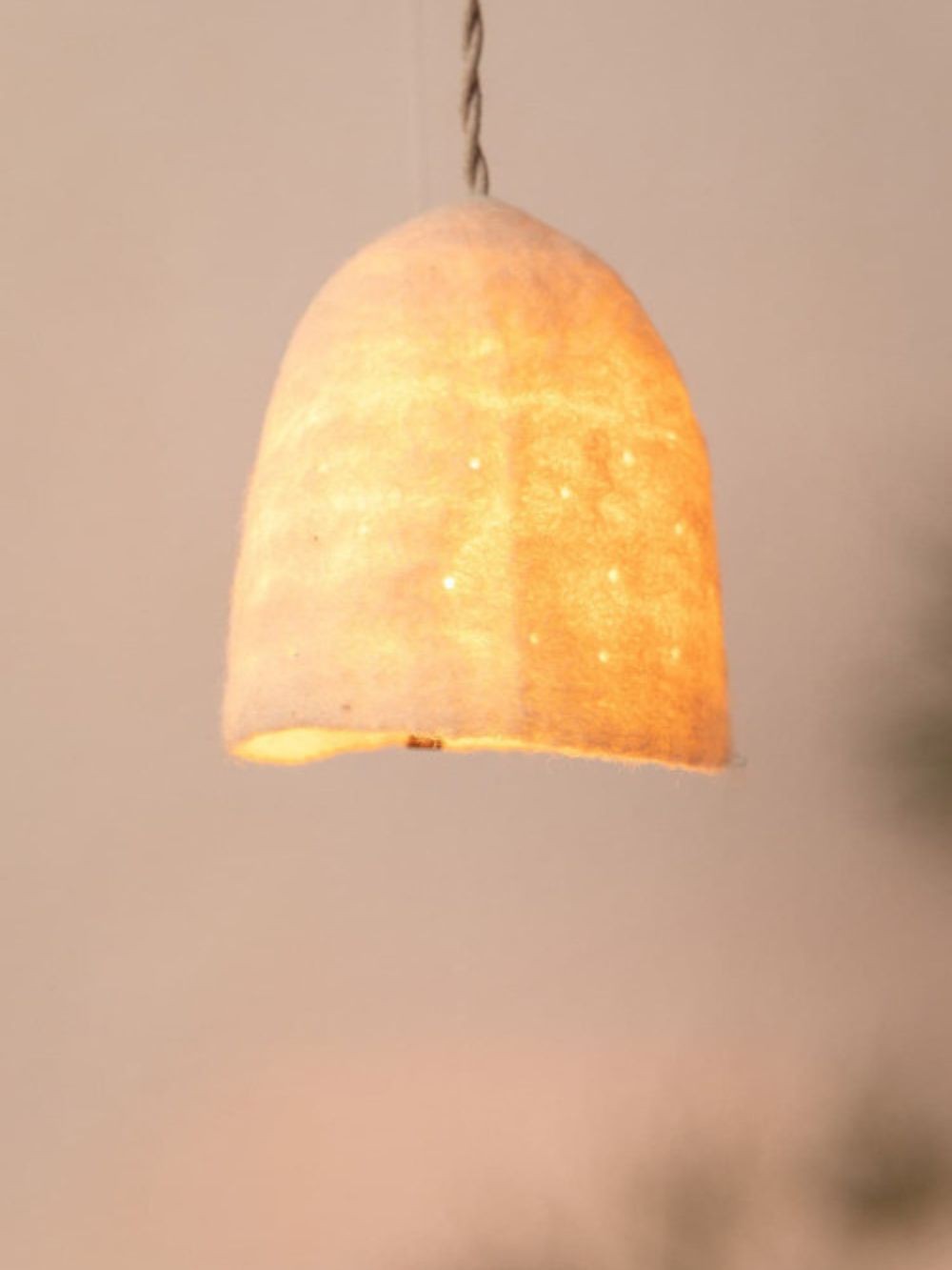 Abat-jour perforé en laine feutrée, la laine de mouton est une matière naturelle, noble et renouvelable.