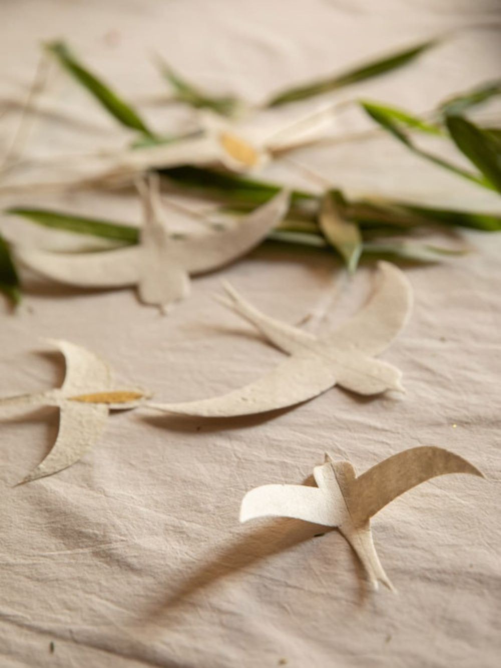 Ensemble de 10 hirondelles décoratives en papier népalais, fait à la main au Népal.