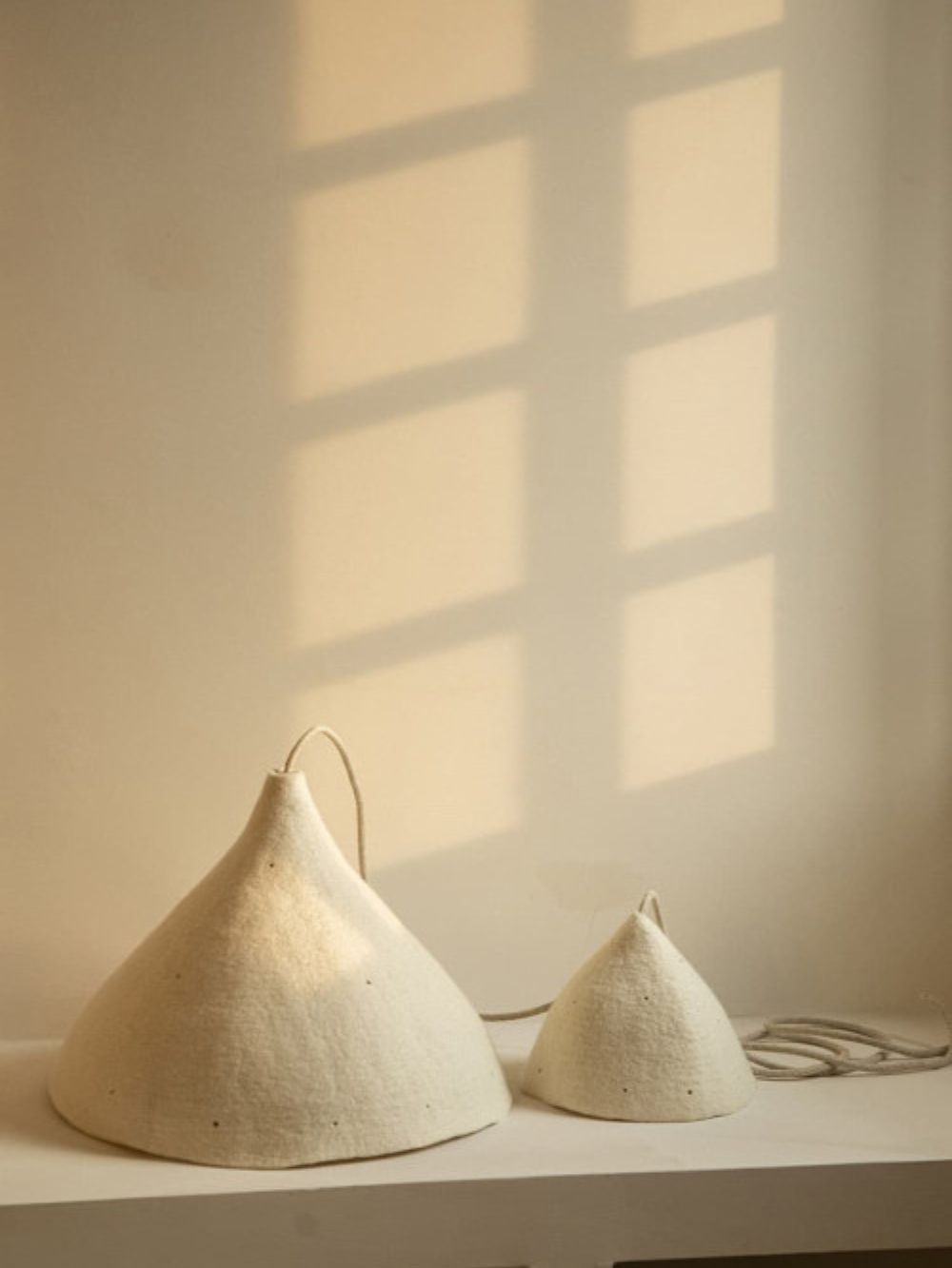 Abat-jour perforé en laine feutrée, la laine de mouton est une matière naturelle, noble et renouvelable.