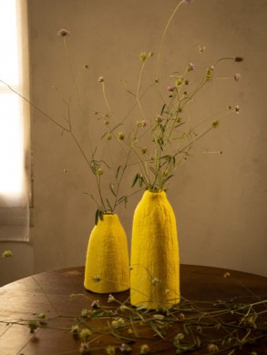 Cache vase cloche permet de dissimuler les contenants que l'on veut cacher, tout en magnifiant les créations florales ! Le mélange du végétal avec le feutre apportera une touche chaleureuse à votre décoration.