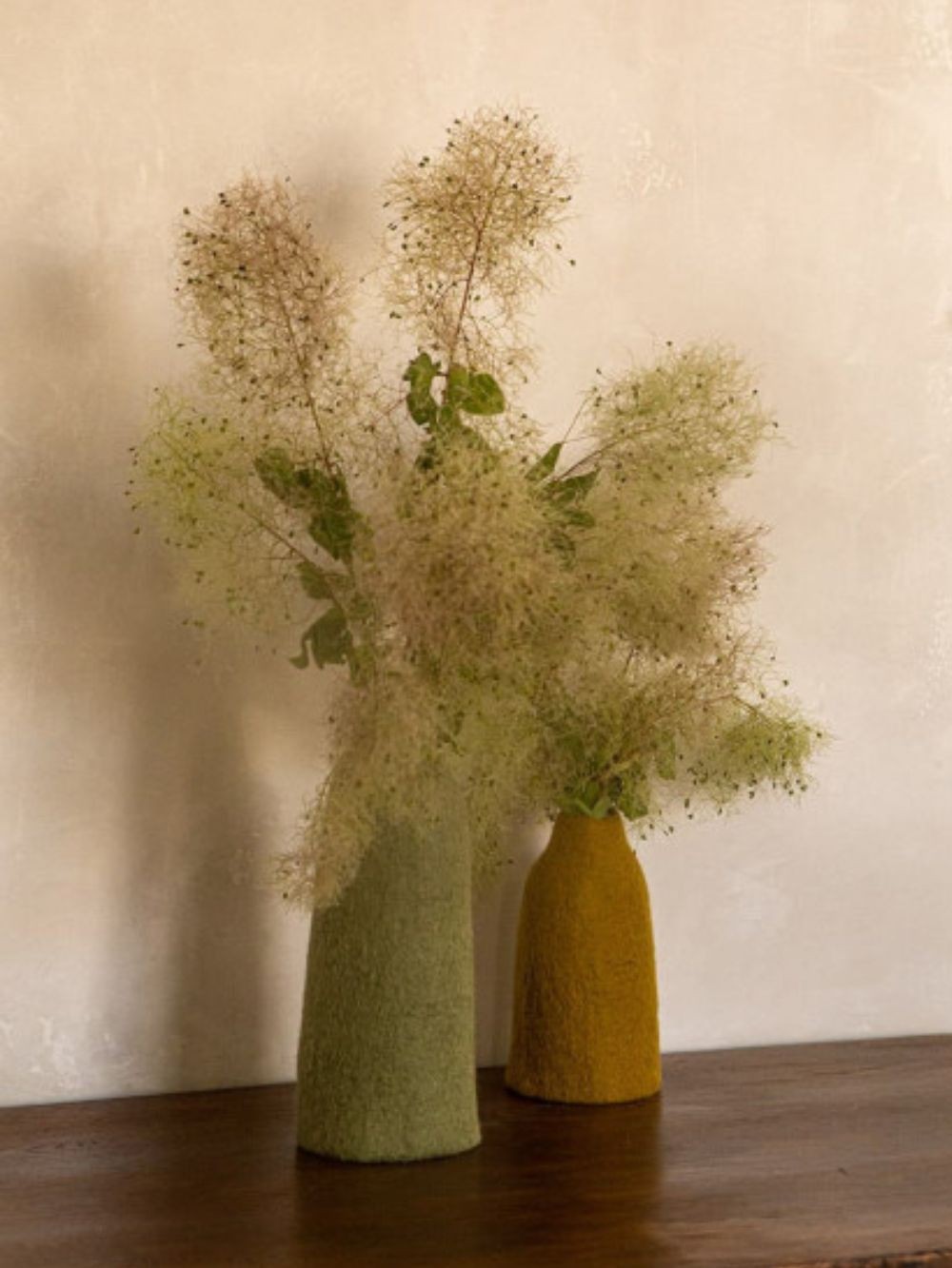 Cache vase cloche permet de dissimuler les contenants que l'on veut cacher, tout en magnifiant les créations florales ! Le mélange du végétal avec le feutre apportera une touche chaleureuse à votre décoration.