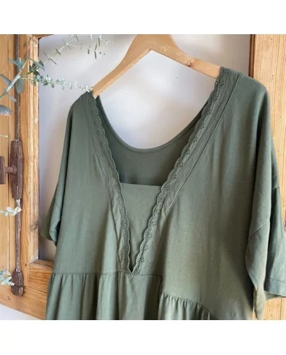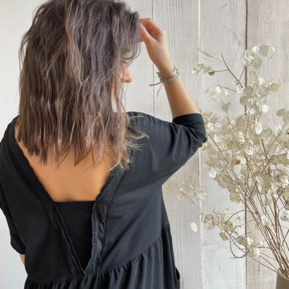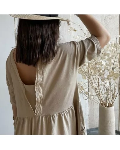 Très jolie robe midi, avec un joli détail dans le dos, petit dos nu et détail broderie... Très confortable, elle sera parfaite pour les beaux jours !