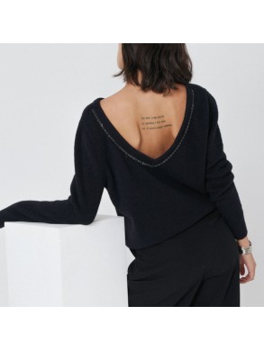 Pull col rond avec un joli décolleté en V dans le dos blanc ou noir