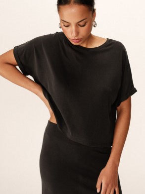 Tee shirt oversize en modal manches 3/4, l'encolure ronde et les épaules tombantes