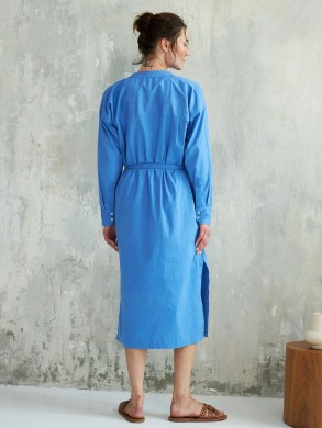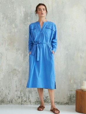 Robe longue ceinturée, grandes poches plaquées poitrine