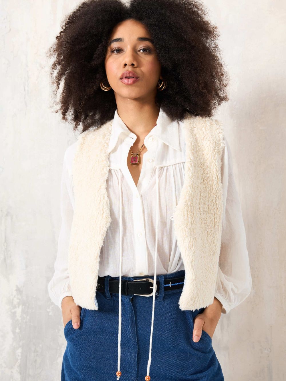 Gilet fausse fourrure ecru