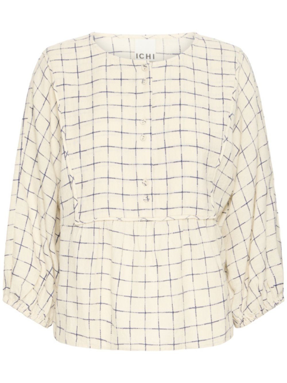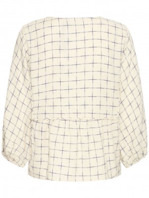 Blouse à carreaux sur fond écru, coupe ample manche mi longue
