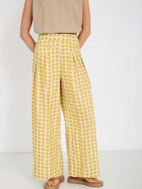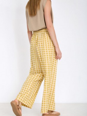 Pantalon imprimé jaune, élastiqué derrière
